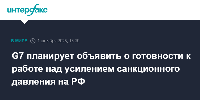 G7 планирует объявить о готовности к работе над усилением санкционного давления на РФ