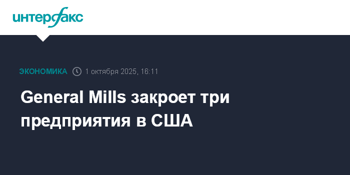 Москва. 1 октября. INTERFAX.RU - General Mills Inc., один из крупнейших производителей продуктов питания в США, сообщил, что закроет три предприятия в штате Миссури в рамках усилий, направленных на повышение конкурентоспособности его цепочки поставок.