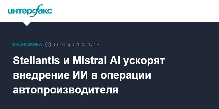 Москва. 1 октября. INTERFAX.RU - Европейский автоконцерн Stellantis и французский ИИ-стартап Mistral AI расширяют партнерство с целью ускорения внедрения искусственного интеллекта в операции автопроизводителя, говорится в сообщении последнего.