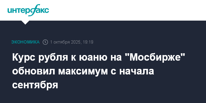 Курс рубля к юаню на "Мосбирже" обновил максимум с начала сентября
