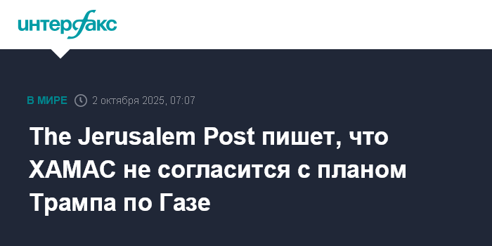 The Jerusalem Post пишет, что ХАМАС не согласится с планом Трампа по Газе
