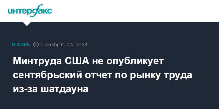 Минтруда США не опубликует сентябрьский отчет по рынку труда из-за шатдауна