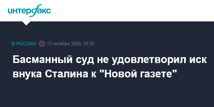 Басманный суд не удовлетворил иск внука Сталина к "Новой газете"