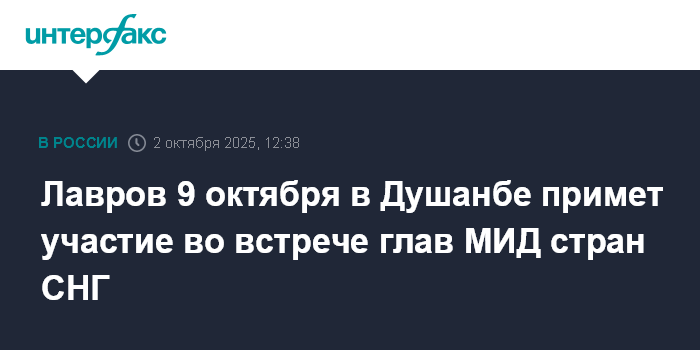 Лавров 9 октября в Душанбе примет участие во встрече глав МИД стран СНГ