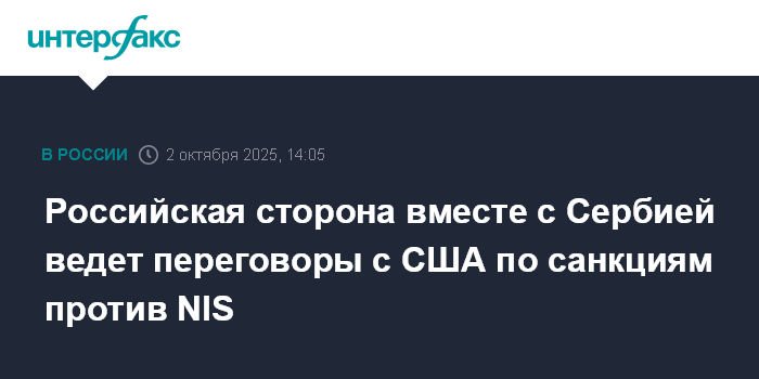 Российская сторона вместе с Сербией ведет переговоры с США по санкциям против NIS