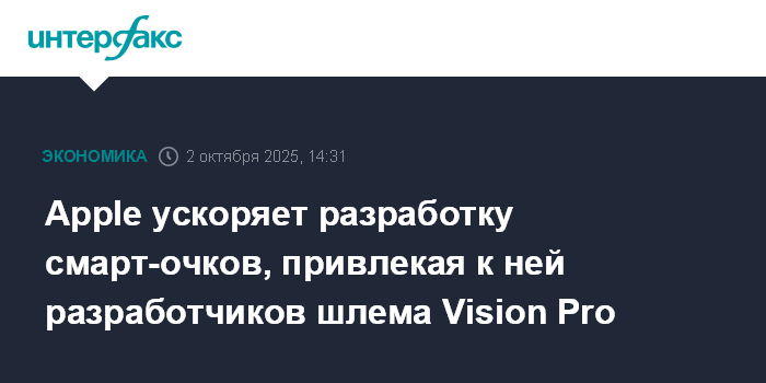 Apple ускоряет разработку смарт-очков, привлекая к ней разработчиков шлема Vision Pro