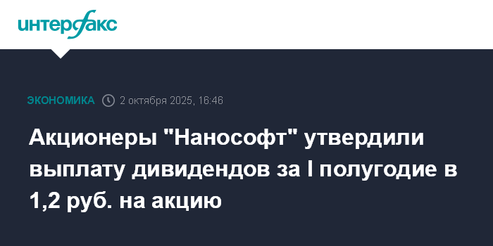 Акционеры "Нанософт" утвердили выплату дивидендов за I полугодие в 1,2 руб. на акцию