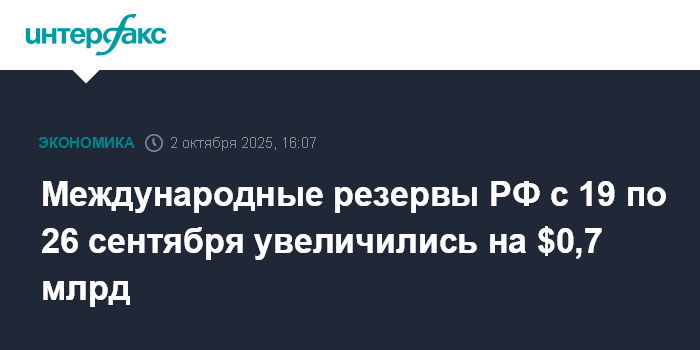 Международные резервы РФ с 19 по 26 сентября увеличились на $0,7 млрд