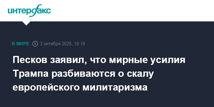 Песков заявил, что мирные усилия Трампа разбиваются о скалу европейского милитаризма