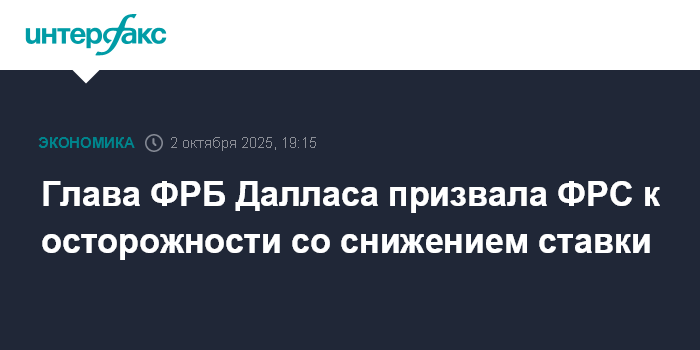 Глава ФРБ Далласа призвала ФРС к осторожности со снижением ставки
