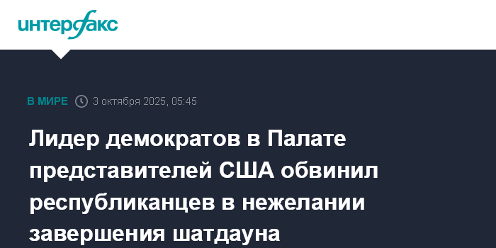 "Мы хотим провести двухпартийную дискуссию, руководствоваться здравым смыслом, чтобы возобновить работу правительства, принять соглашение о расходах, которое улучшит жизнь американского народа, особенно в том, что касается высокой стоимости жизни", - сказал Джеффрис, его цитирует издание The Hill.