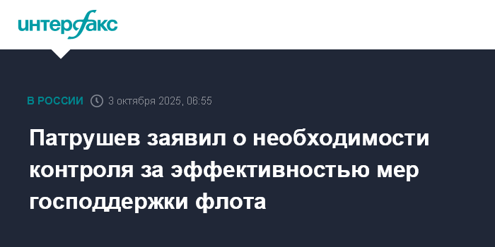 Патрушев заявил о необходимости контроля за эффективностью мер господдержки флота