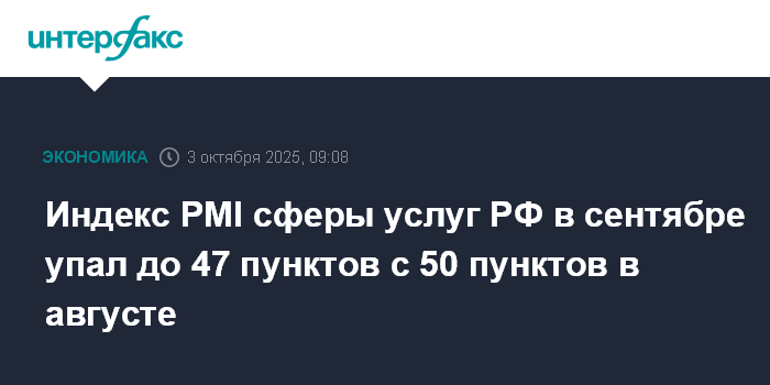 Индекс PMI сферы услуг РФ в сентябре упал до 47 пунктов с 50 пунктов в августе