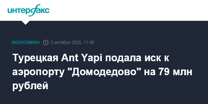 Турецкая Ant Yapi подала иск к аэропорту "Домодедово" на 79 млн рублей