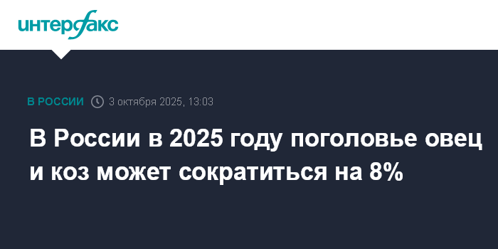 По прогнозам Минсельхоза, к концу 2025 года количество овец и коз составит 17,654 млн голов. В 2024 году их было 19,138 млн голов, сообщается в презентации Александровой. Таким образом, показатель снизится на 8%.