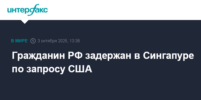 Москва. 3 октября. INTERFAX.RU - Полиция Сингапура в пятницу задержала гражданина РФ по обвинению в нарушении американского законодательства, сообщили в российском посольстве в этой стране.
