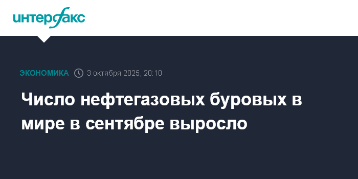 Москва. 3 октября. INTERFAX.RU - Число действующих нефтяных и газовых буровых установок в сентябре увеличилось, по данным американской нефтесервисной компании Baker Hughes.
