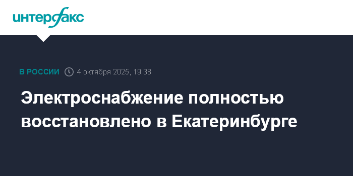 Электроснабжение полностью восстановлено в Екатеринбурге