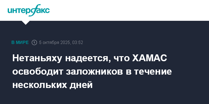 Близкий к Нетаньяху источник сообщил изданию The Times of Israel, что освобождение заложников в короткие сроки возможно при условии, что переговоры в Египте по завершению технических деталей в рамках мирного плана президента США Дональда Трампа по Газе пройдут гладко.