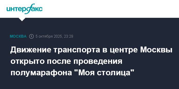 Москва. 5 октября. INTERFAX.RU - Улицы, перекрытые в связи с проведением полумарафона "Моя столица", вновь открыты для движения, сообщает столичный дептранс.