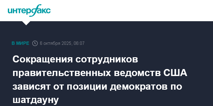 Ранее президент Дональд Трамп назвал шатдаун "беспрецедентной возможностью" для сокращения штатов агентств и сообщил, что намерен обсудить с директором Управления административно-бюджетной политики Белого дома Расселом Воутом "какое из многочисленных агентств демократов" следует сократить.