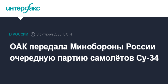 ОАК передала Минобороны России очередную партию самолётов Су-34
