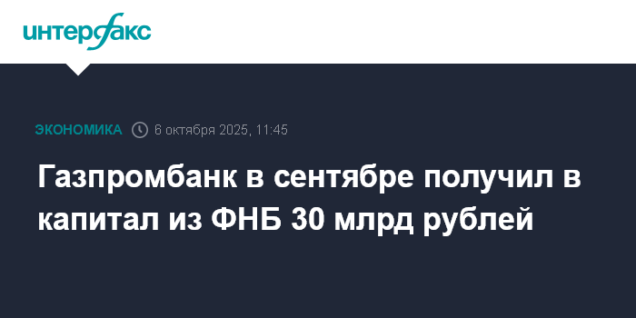 Газпромбанк в сентябре получил в капитал из ФНБ 30 млрд рублей