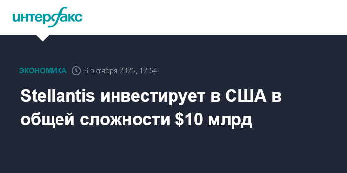 Москва. 6 октября. INTERFAX.RU - Автопроизводитель Stellantis NV планирует инвестиции в США на общую сумму порядка $10 млрд, сообщает Bloomberg со ссылкой на информированные источники.