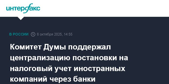 Комитет Думы поддержал централизацию постановки на налоговый учет иностранных компаний через банки