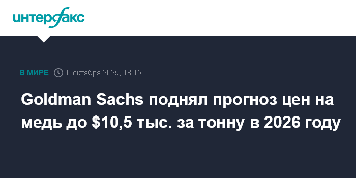 Эксперты Goldman ожидают, что из-за приостановки работы этого рудника общемировая добыча меди в этом году вырастет на 0,2%, а не на 0,8%, как предполагалось прежде. В 2026 году она увеличится на 1,9% против ранее предполагавшихся 2,2%.