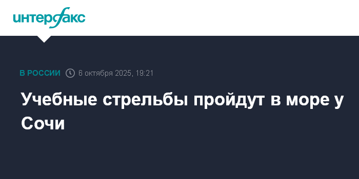 Учебные военные стрельбы пройдут 6 октября в период с 20:00 до 23:00 по московскому времени и 7 октября с 9:00 до 12:00 в сочинской акватории на траверзе морского порта.
