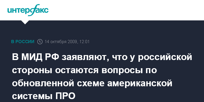 В МИД РФ заявляют, что у российской стороны остаются вопросы по обновленной схеме американской системы ПРО
