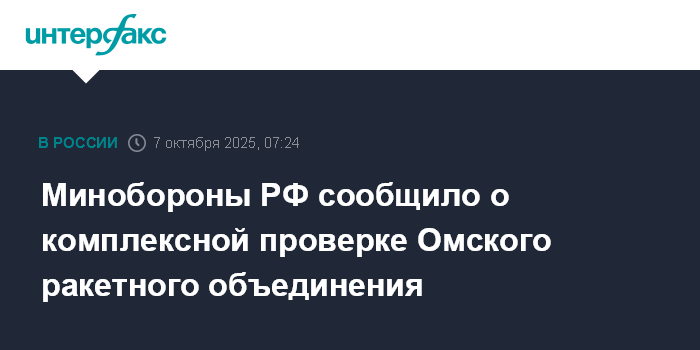 Минобороны РФ сообщило о комплексной проверке Омского ракетного объединения