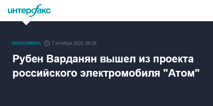 Москва. 7 октября. INTERFAX.RU - Рубен Варданян, несколько лет назад инвестировавший в компанию-разработчика российского электромобиля "Атом" вместе с гендиректором "Камаза" Сергеем Когогиным, вышел из состава участников проекта.