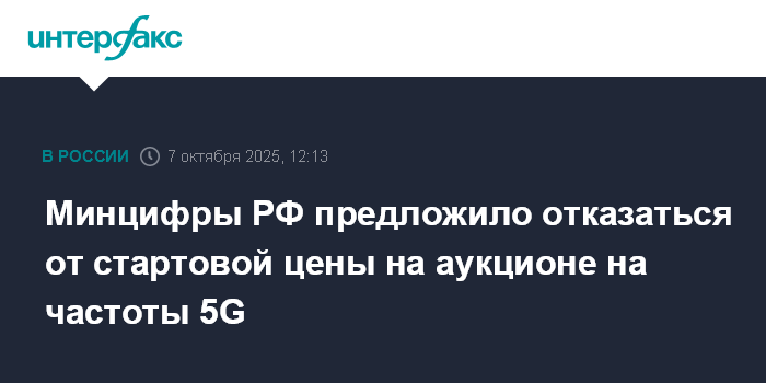 Минцифры РФ предложило отказаться от стартовой цены на аукционе на частоты 5G