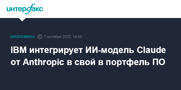 Москва. 7 октября. INTERFAX.RU - Американский ИИ-стартап Anthropic и International Business Machines (IBM) анонсировали создание стратегического партнерства для ускорения разработки корпоративных решений на базе искусственного интеллекта.