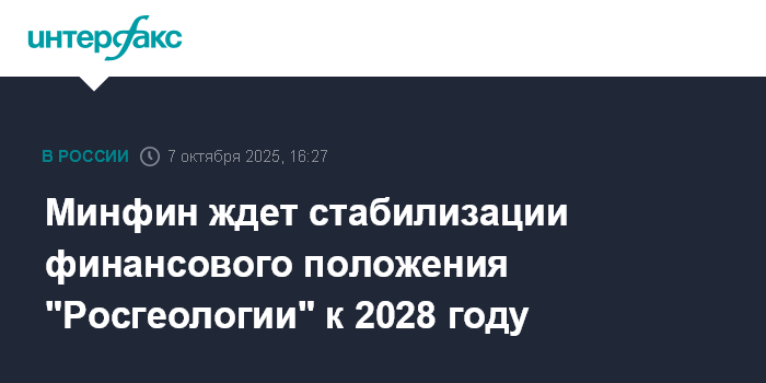 Минфин ждет стабилизации финансового положения "Росгеологии" к 2028 году