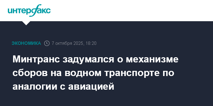 Москва. 7 октября. INTERFAX.RU - Министерство транспорта РФ думает над инструментами внедрения сборов на водном транспорте по аналогии с авиационной отраслью, сообщил глава Минтранса РФ Андрей Никитин.