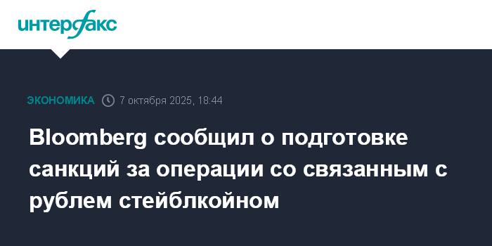 Bloomberg сообщил о подготовке санкций за операции со связанным с рублем стейблкойном