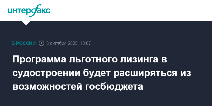 Программа льготного лизинга в судостроении будет расширяться из возможностей госбюджета