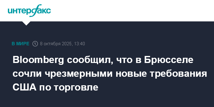 Bloomberg сообщил, что в Брюсселе сочли чрезмерными новые требования США по торговле