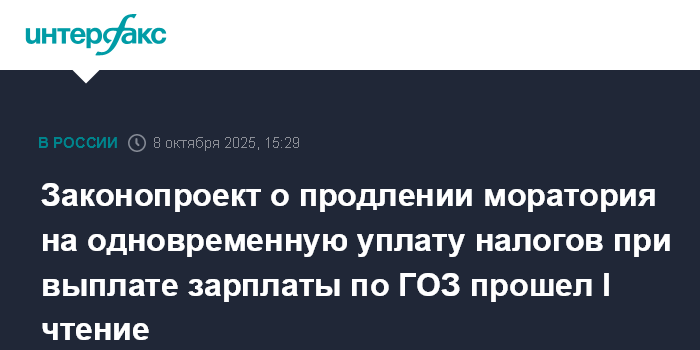 Законопроект о продлении моратория на одновременную уплату налогов при выплате зарплаты по ГОЗ прошел I чтение