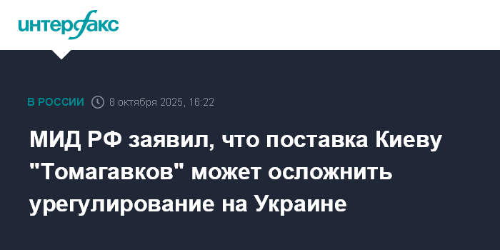 МИД РФ заявил, что поставка Киеву "Томагавков" может осложнить урегулирование на Украине