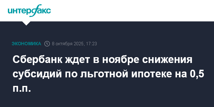 Сбербанк ждет в ноябре снижения субсидий по льготной ипотеке на 0,5 п.п.