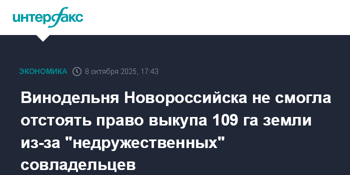 Винодельня Новороссийска не смогла отстоять право выкупа 109 га земли из-за "недружественных" совладельцев