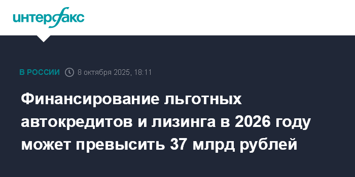 Москва. 8 октября. INTERFAX.RU - Объем финансирования программ льготного автокредитования и лизинга в 2026 году, заложенный в текущий проект федерального бюджета на 2026-2028 годы, может быть увеличен ко второму чтениюа в Госдуме. Как сообщил журналистам глава Минпромторга Антон Алиханов, такие предложения планирует подготовить его министерство.
