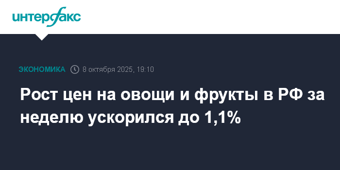 Рост цен на овощи и фрукты в РФ за неделю ускорился до 1,1%