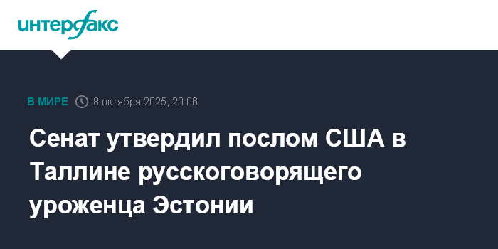 Сенат утвердил послом США в Таллине русскоговорящего уроженца Эстонии