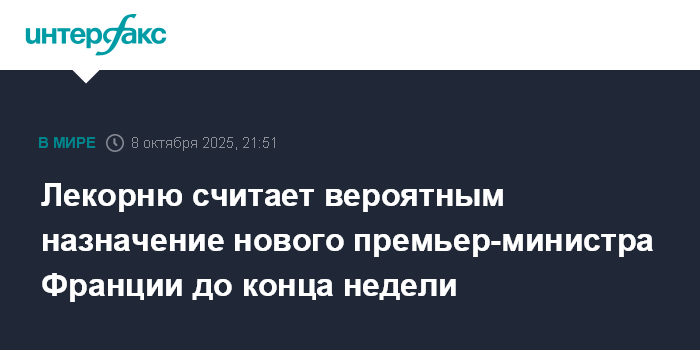 Лекорню считает вероятным назначение нового премьер-министра Франции до конца недели
