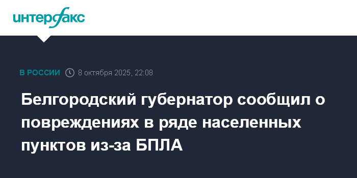 Москва. 8 октября. INTERFAX.RU - Губернатор Белгородской области Вячеслав Гладков сообщил об очередных ударах ВСУ по региону.
